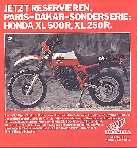 eine XL 500 R bei der Paris-Dakar 2001/2002 ( Quelle Reitwagen, Österreich) gesehen von Flo