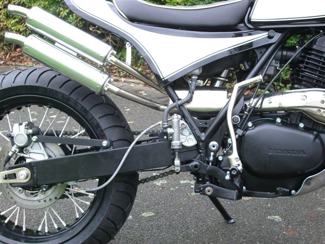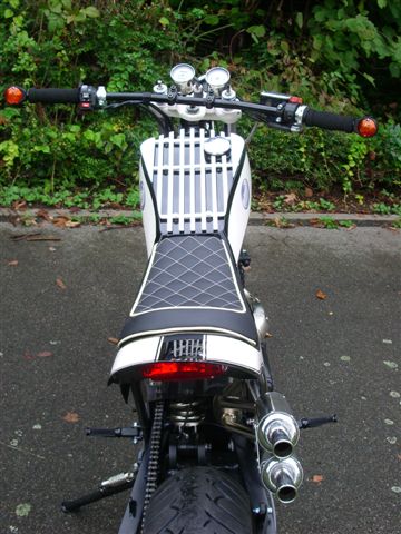 · Rahmen XL 500 R PD02 vollständig modifiziert, pulverbeschichtet · Motor XL 500 R, lackiert, Null Kilometer · Serienvergaser neu bedüst · Elektrik modifiziert, Gel Batterie · 37er Gabel CB 900 F Bol d´Or, Luftunterstützt · Gabelstalbilisator, HK Motorsport Fender · LSL Streetbar Lenker, Ochsenaugen · HK Motorsport Doppelrohrauspuffanlage, Edelstahl-Endtöpfe · HK Motorsport Monocock · HK Motorsport Kettenschutz Alu · HK Motorsport Nummernschildträger seitlich · HK Motorsport Tank mit Gepäckträger · HK Motorsport Sitzbank, Leder · HK Motorsport GSX-R Schwinge, Federung / Umlenkung Serie XL · Behr 5, 5 x 17" / 180/55 Metzler Z6 hinten · KLE Nabe mit Bremsanlage hinten · Sanremo 3,5 x 18“ / 120/70 Metzler Z6 vorne · CB 900 F Nabe · Doppelkolben-Bremsanlage CB 900 Bol d´Or vorne · VF 750 Bremsarmatur · Allegri Cesare Stahlflexleitungen · Anbauteile pulverbeschichtet · Classic Scheinwerfer auf HK Motorsport Träger · Lackierung TNH Design by HK Motorsport · Tüv neu |