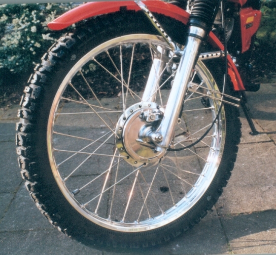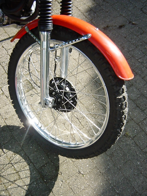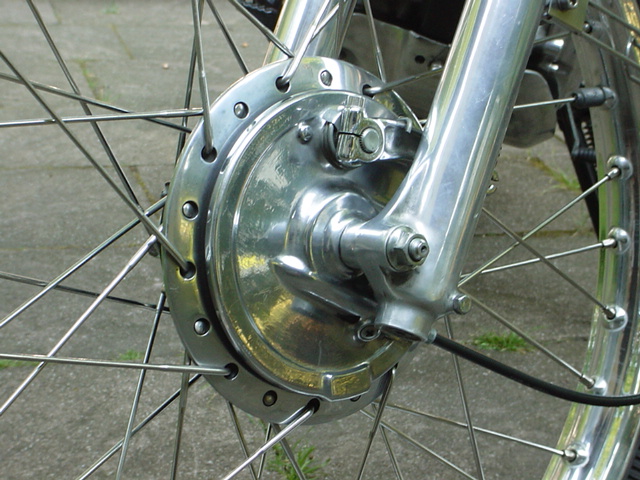 Radnaben teilweise, Bremsankerplatten vorne und Gabelholme poliert, Räder