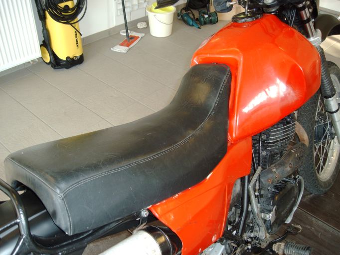 Tank ist ein 22 Liter ES Metalltank, mit angepasster Sitzbank. |