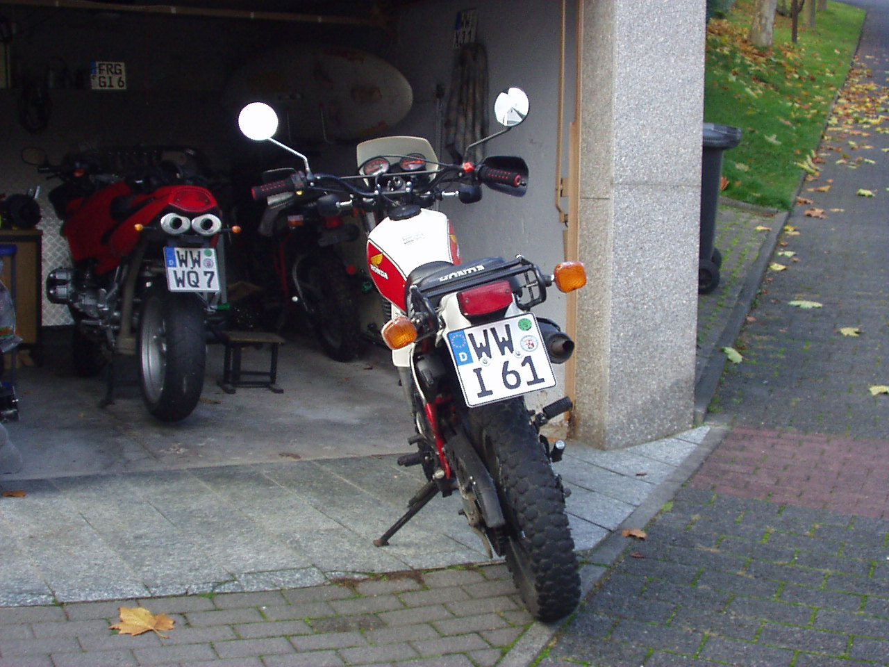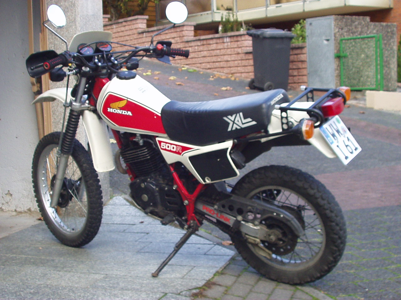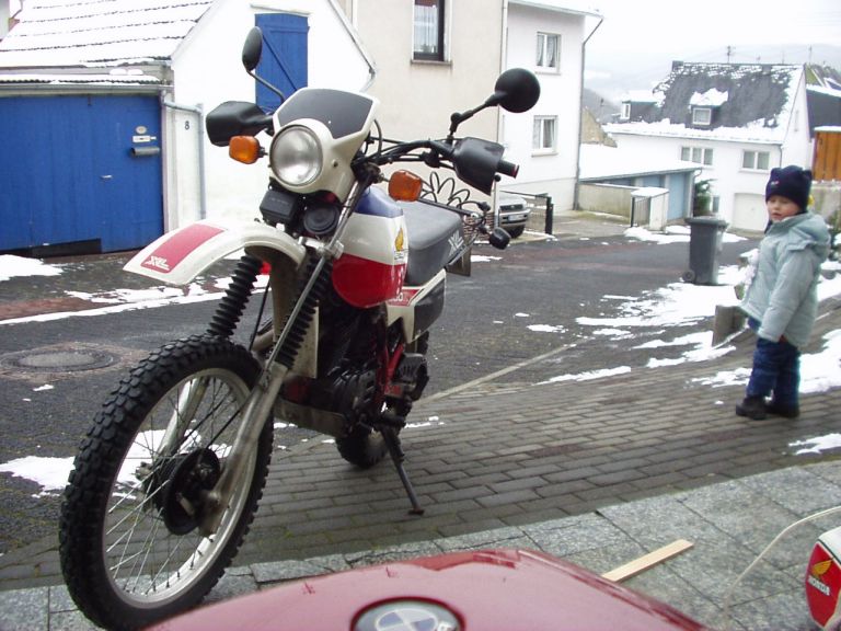 Hier also die pics meiner XL! Bj. 03/84 PD02 Hatte 4 Einträge im KFZ-Brief, weiß aber nicht ob die alle von verschiedenen Haltern waren, da die XL im Mai 2004 nach längerer Standzeit eine Vollabnahme bekommen hat. Sie ist weitestgehend original, bis auf den hinteren modifizierten Gepäckträger. Wo der eigentlich herstammt, weiß keiner mehr so genau. Ursprünglich waren da mal Kofferhalter dran, die aber leider von irgendjemandem abgesägt worden sind. Dies ist meine dritte 500R. 1989 hatte ich schon mal 2 Stück. Eine weiße und eine der schönen, seltenen silbernen (leider mit Nocken- und Kopfschaden. Die weiße hat's dann auf der AB bei Vollgas zerlegt. erster Übermaßkolben bei ca. 140 km/h ein lauter Knall, Maschine lief auch noch, ließ sich aber nicht mehr schalten. Ankicken ließ sie sich ebenfalls noch und tuckerte dann vor sich hin. Die Kleine dann heimgebracht, Motor ausgebaut, Kopf abgenommen und ....klirr, fiel der Kolben runter. Es hatte nämlich den Bolzen aus dem Auge gerissen, Dieser ist dann ins Getriebe geschossen und hatte dieses dann zu Sägemehl verarbeitet. Nunja, da war dann meine XL-Kariere erstmal beendet bis zu jenm Oktobertag 2004, als ich meine jetzige erblickte. LIEBE AUF DEN ERSTEN BLICK!!! Gruss, Andi