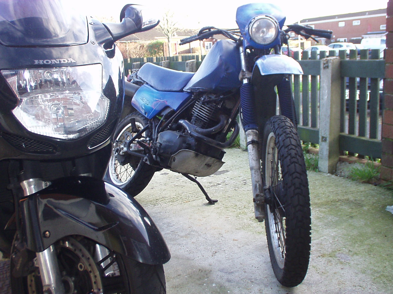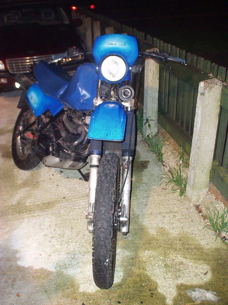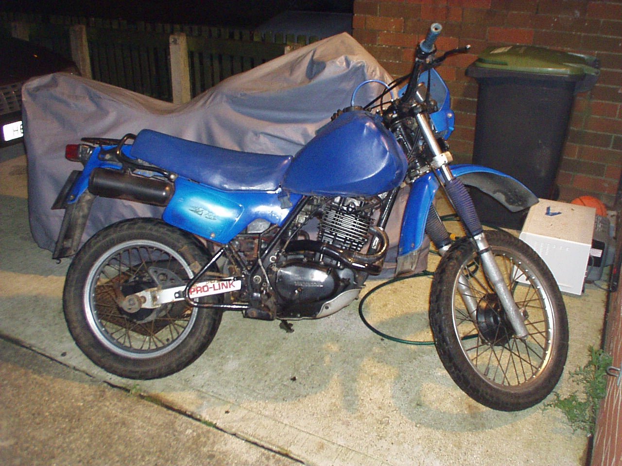Guten Tag Webmeister, Mein name ist Gordon, ich wohne in England. I have an imported XL500RC painted blue. Supertrapp exhaust Acerbis fuel tank Blue covered seat Oxford Clock 58 000 kms |