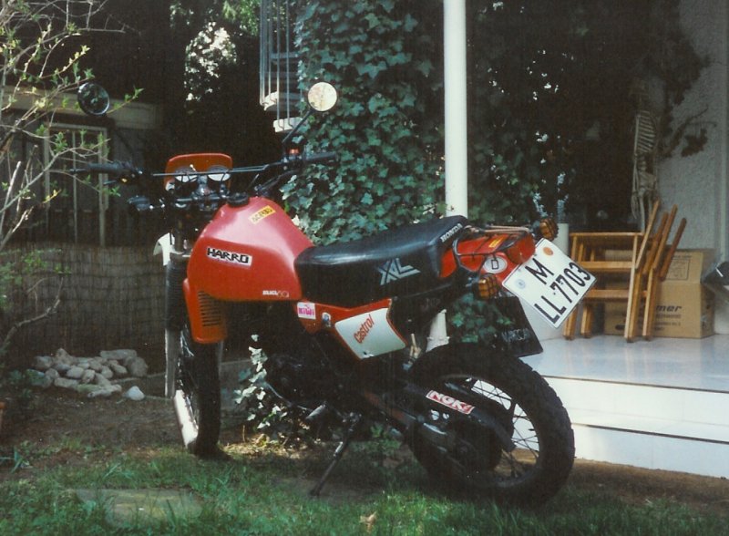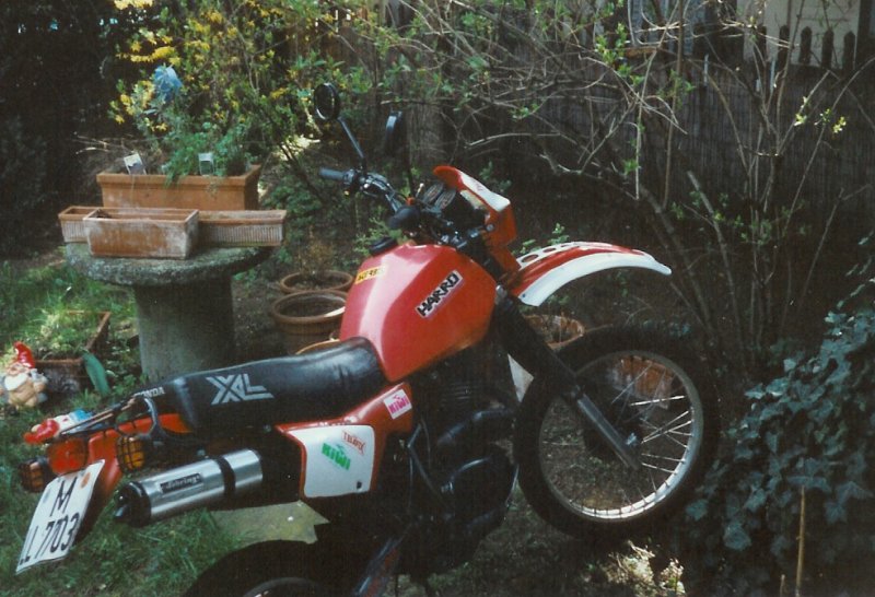 Hallo, bin auf die Seite gestoßen, weil ich mir nach lange Abstinenz wieder eine XL 500 R zulegen möchte. Ich hatte 1995 bereits eine, die seinerzeit Baujahr ´ 83 war.Neben all den bekannten XL Krankheiten, spendierte ich ihr einen großen Tank, ein anderes Enduro Heck, die Frontmaske der XL 600 und Ochsenaugen.Ich habe sie dann 1997 für eine Yamaha FZR 1000 aufgegeben. Hätte ich da mal nicht getan. Hatte einen bösen Unfall, der mich für einige Jahre vom Moped fahren abhielt. Jetzt wird es wieder Zeit für eine neue( gebrauchte) treue XL 500 R Anbei schicke ich ein paar Foto meiner alten XL Grüße aus München Michael |