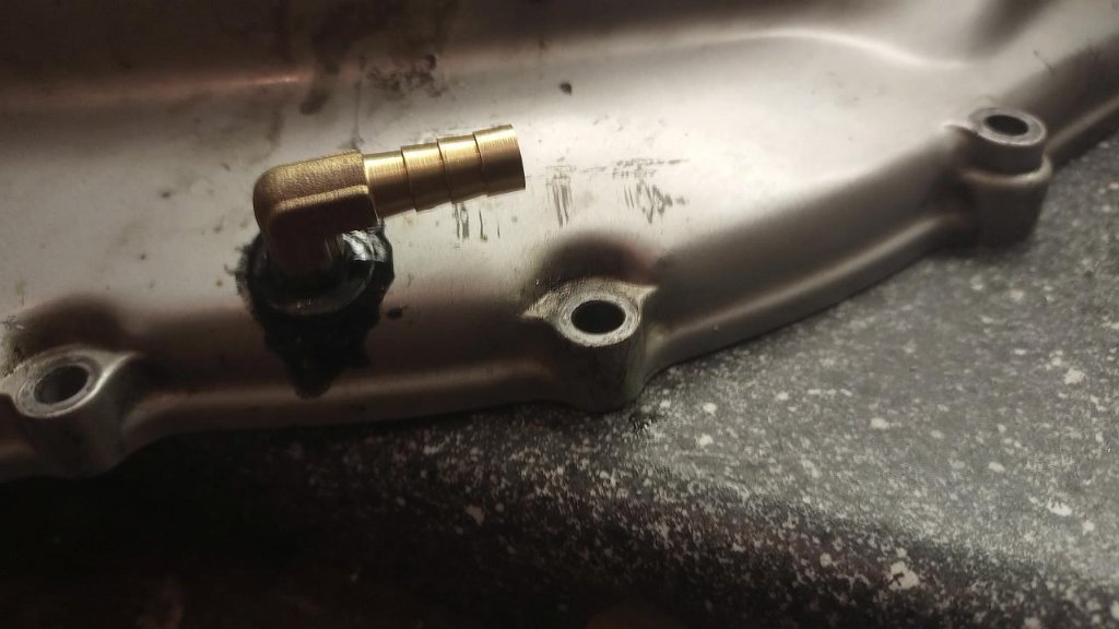 Wie gesagt, ich fahre seit knapp drei Jahren mit den eingeklebten Rohrwinkeln ohne Probleme. Öltemperaturen von über 100°C dürfte ich nicht erreicht haben, die Endstücke sitzen ja außen und sind somit auch etwas gekühlt.