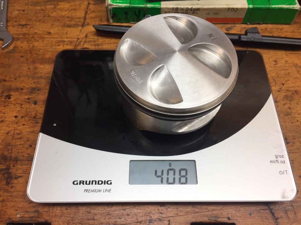 Also identisch mit unseren abgedrehten 95mm Wisecos! Der 95mm Wiseco "bearbeitet" hat ein Gewicht von 412gr. inkl. Kolbenringe (o.Kolbenbolzen)