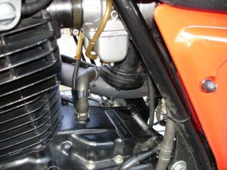 An den Öldunst-Ablassschlauch (neben der Schwinge nach unten) gehört ein Stopfen.