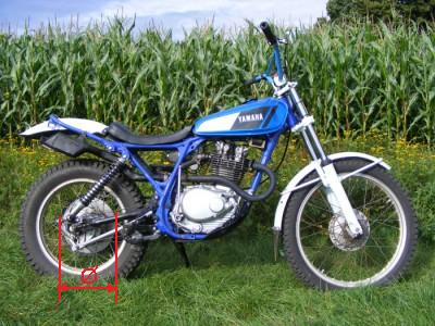 habe als Kettenrad einen 62Z Alu Rohling von AFAM auf der Drehbank angepasst. Als Ritzel arbeitet ein 11Z (statt15) von der BW Maico. Das passt rein Zufällig auf die Getriebeausgangswelle (ob die Japaner die Verzahnung wohl abgekupfert haben???) So habe ich 42 KW Umdrehungen / Hinterrad. Das ist fürs Trialfahren ein guter Wert. Für die, die es interessiert was ich noch so alles verändert habe, hier eine url zum nachsehen: http://www.rhoenradturnen.org/ToLus_Sei ... /trial.htm