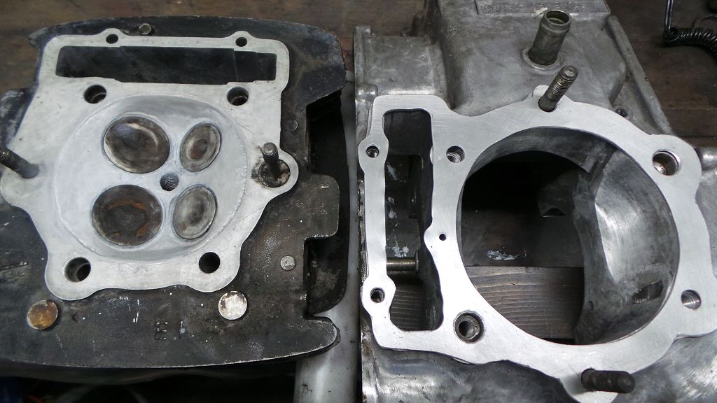 Oberes Motorgehäuse, Brennraum<br />und Fußdichtung. Ventile werden noch erneuert.