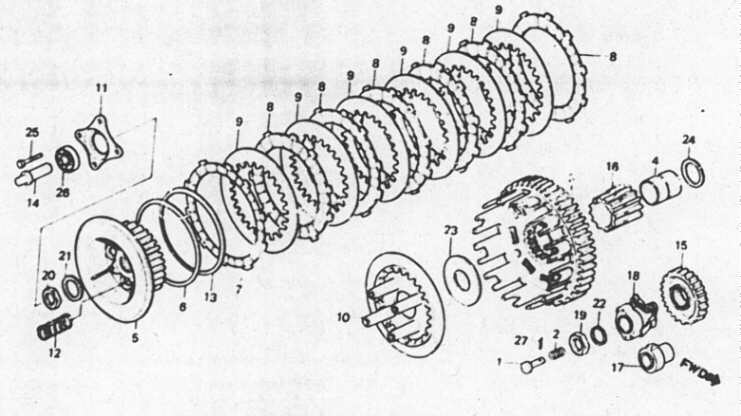 P.S.: Der Fehler ist echt tückisch, weil die unterschiedlichen Druckplatten von Honda nicht dokumentiert oder gekennzeichnet wurden. Selbst in den Schraubertipps hier im Forum ist fälschlicherweise zu lesen, die Explosionszeichnung im Bucheli wäre fehlerhaft, weil das Teil 23 fehlt (http://www.xl500.de/tipps/topseite/schraubertipps.htm). Dabei stimmt die Zeichnung schon - für manche Kupplungen :-).