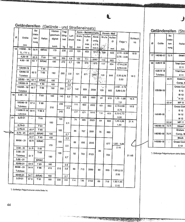dazu kommt noch dass zzt. bei geländereifen zwei verschiedene arten der metrischen grössenbezeichnungen im umlauf sind. die eine geht nach der karkasse die andere nach der "realen" aussenbreite.