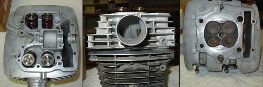 habe vor einiger Zeit Bilder eines getunten Zylinderkopfes aus den USA wiederfinden können. Gut zu erkennen der aufgeschweißte Ansaugstutzen mit extrem geweiteten Kanälen. Die Ventilführungen liegen sehr weit frei. Auch zu erkennen die Titan Ventilfederteller.