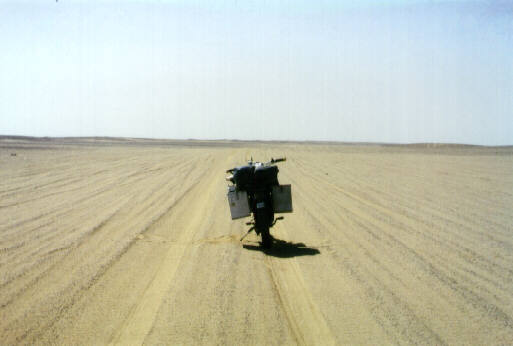 Im Mai 1996 brechen 3 Wüstenverrückte in Richtung Süden auf. Die drei sind Paul Selzer, Robert Minge und ich, Volker Neumann. Kennengelernt auf unserem ersten Abenteur in Ägypten vor 10 Jahren. haben wir in getrennten Wegen unsere Wüstenerfahrungen gesammelt. Nun wollen wir gemeinsam die unendlichen Weiten der Libyschen Sahara bereisen. Nach 1 jähriger Vorbereitungszeit kann es endlich losgehen. Von Hamburg ( im strömenden Regen natürlich ) geht es für mich nach Nürnberg. Von hier geht es zu dritt über die Schweiz nach Italien. In Genua besteigen wir die Fähre, die uns in 20 Stunden nach Tunesien bringt. Dort angekommen machen wir uns gleich auf den Weg nach Süden. Nach zwei Tagen haben wir die libysche Grenze erreicht und sind sehr gespannt, was uns erwarten wird.